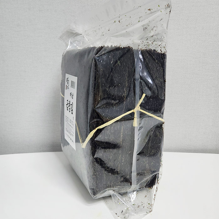 제가 이번에 구매한 제품인데 (100장입니다) 아래 이미지를 확인하시면, 한눈에 보아도 매우 두껍습니다. 이렇듯 곱창김은 스르르 사라지지 않고 씹히는 맛이 있습니다.