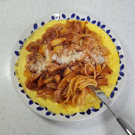 면, 케찹, 토마토소스, 계란이 최소 준비물이니 완벽하게 재료를 준비할 필요 없이 집에 있는 재료를 활용하면 됩니다.