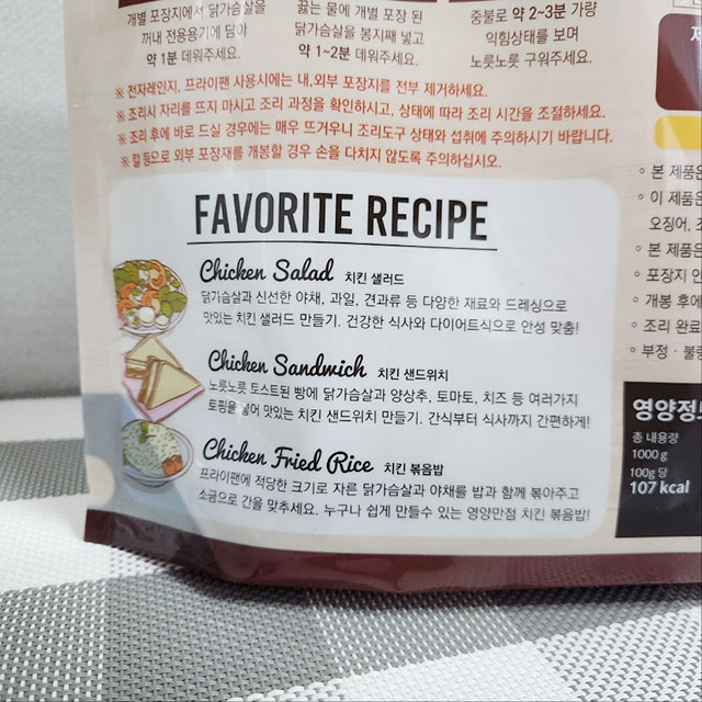 그릴드 닭가슴살 먹는 방법은 뒷면에 잘 나와있었습니다.
